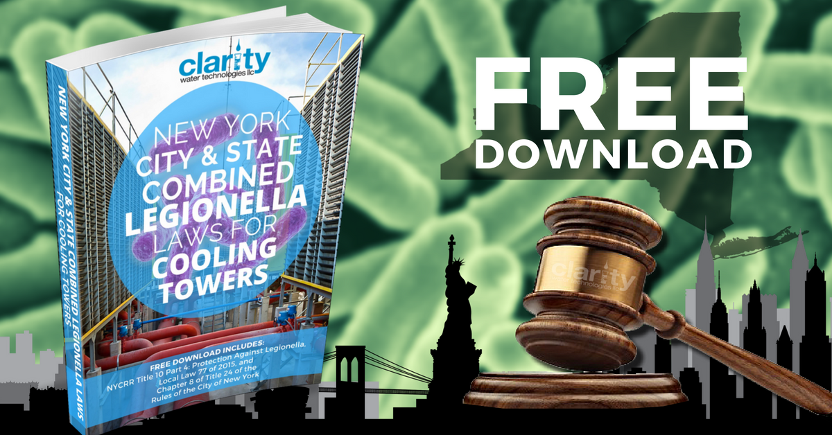 Please be aware: Clarity Water Technologies is not responsible for the accuracy or implementation of this document. This document, The New York City and State Combined Legionella Laws for Cooling Towers, is for information purposes only. By using this document in ANY way, you are hereby agreeing to fully defend, indemnify and hold harmless Clarity Water Technologies from and against any and all losses, claims, suits or other legal liability and legal expenses of any nature imposed upon or brought against them by reason of any act or omission of Clarity Water Technologies or its agents or employees that may arise in use of this document.
