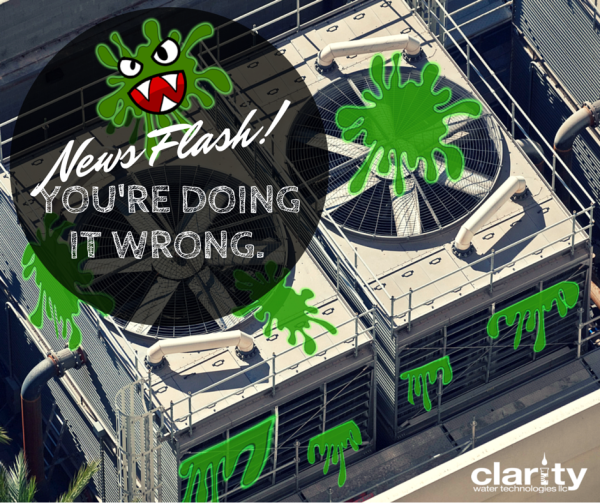 3. Unnecessary and profound liability – Biofilms in your tower could indicate that you have a far more ominous issue like a water-borne pathogen. Legionella is one of the most ominous in this category. Legionella bacteria are responsible for causing Legionnaires’ Disease, a potentially deadly form of pneumonia. If you tower is located in an area that is close enough to send mist into a populated area, you have a potentially huge liability on your hands. Anyone that is immunocompromised is at a much greater risk of developing Legionnaires’ Disease from an infected cooling tower. These include the very old, the very young or someone who is already fighting an infection. Facility operators that take care of cooling towers at senior living centers or hospitals should be on constant alert for Legionella in their systems.